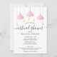 Celebre de forma virtual quando não puder estar junto. Com nuvens cor-de-rosa e estrelas douradas em cordas, em fundo branco, este convite elegante de chá de bebê virtual online para menina, sprinkle ou casal é perfeito para todos os pequenos que estão a caminho. Adicione os detalhes da celebração em letras modernas para criar o convite perfeito. Criado por Thisisnotme