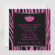 zebra rosa-quente com a princesa tiara coroa, bebê da princesa convite ao chá.