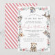 Elegante verde-rosa dos animais da floresta florestal doce convite para chá de menina.