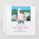Design floral elegante, engraçado e vibrante com uma fita azul-branca brilhante e flores brancas para gêmeos: bebês-garotos com uma cegonha-rico no campo verde, natureza sob o céu azul, reelaborados da safra.