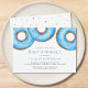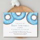 Convide a família e os amigos para o bebê do seu filho borrifado com este convite fofo. Apresenta rosquinha azul-aquarela e tipografia na moda. O dorso é decorado com aspersão colorida. Facilmente personalizável. Original Watercolor © Michele Davies.