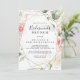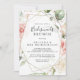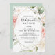 Este convite de chá de brunch, dourado geométrico, é perfeito para um chá de casamento moderno. O design apresenta uma folhagem botânica, pintada à mão, verde e dourada, com flores cor-de-rosa, pinceladas, brancas, enfeitando uma elegante estrutura geométrica.