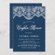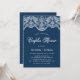 Casais elegantes Convite para chá com rendas botânicas brancas em um fundo azul marinho. personalize adicionando nomes, data, hora, local e outros detalhes. Este convite elegante é perfeito para qualquer tema de chás casais.