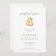 Um convite na moda minimalista para um chá de casais com uma ilustração aquosa de duas peras e a manchete "o par perfeito" na letra da caligrafia moderna.