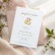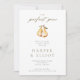 Um convite na moda minimalista para um chá de casais com uma ilustração aquosa de duas peras e a manchete "a pera perfeita" na letra da caligrafia moderna.