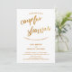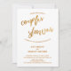 Esta distinção arrojada e simples deve-se à fonte moderna e casual escrita à mão usada para frases de sotaque e ao padrão de ondas soltas colocado sobre o fundo. As ondas são feitas para evocar os festejos. Nesta peça, a letra de escrita manual foi usada para criar um gráfico com as palavras "chá casal". Tanto o texto do cabeçalho como o padrão de fundo foram embelezados com um padrão de folha de ouro. Use os campos modelo para adicionar seus detalhes pessoais e fazer deste design festivo seu. O fundo branco pode ser alterado para qualquer cor que você preferir. Por favor, responda a quaisquer solicitações especiais ou personalize a assistência. 100 //