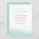 O convite para chás de casamento costeiros elegantes apresenta um gradiente aqua azul-aqua puro, ao longo do fundo, com uma curva graciosa que evoca a subida e o fluxo do mar. Os detalhes do chá de seus casais aparecem em letras clássicas minimalistas com acentos de script manuscritos.
