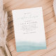 O convite para chás de casamento costeiros elegantes apresenta um gradiente aqua azul-esverdeado aqua, ao longo do fundo, com uma curva graciosa que evoca o bordo e o fluxo do mar. Os detalhes do chá de seus casais aparecem em letras clássicas minimalistas com acentos de script manuscritos.