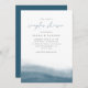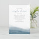 O convite para chás de casamento costeiros elegantes apresenta um gradiente de cor azul de lagoa ao longo do fundo, com uma curva graciosa que evoca a subida e o fluxo do mar. Os detalhes do chá de seus casais aparecem em letras clássicas minimalistas com acentos de script manuscritos.