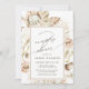 Este cartão de convite para chás apresenta proteína de aquarela pintada, orquídeas brancas, grama de pampas seca, antrúrios brancos, flores silvestres, folhas exóticas com moldura de arco. Para personalização mais avançada deste design, clique no link "personalizar mais". Itens correspondentes também estão disponíveis.