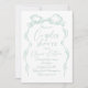 Os convites para chás de casais elegantes apresentam arco de fita desenhado manualmente com fontes modernas de script manuscrito em verde-claro, limpo e simples. Excelente para casamento romântico moderno, casamento maravilhoso e divertido, casamento casual elegante. Veja todas as peças correspondentes na coleção.