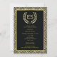 Casais de casamento preto, dourado, grego, e louros, convite para chá com as iniciais que contêm uma coroa de louros e uma borda com chave grega, ou Meander, ou a borda verde grega em ouro e preto. Esta elegante e vintage design do mundo antigo é perfeita para um tema de casamento grego e/ou grego, independentemente do local onde ocorre na Grécia ou em qualquer outro lugar. É uma parte modelo de um casamento completamente personalizável. Também pode ser feito em termos gregos ou bilingues.