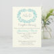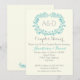 Aqua foliage frame monograma casais de casamento convite para chá com iniciais com um quadro azul aqua feito de folhas e texto em cinza de marfim. Este modelo floral, na moda e elegante monograma é uma parte totalmente personalizável de um design de casamento perfeito para o seu casamento de verão.