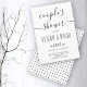 Convite de chá de casais de casamento para caligrafia cursiva. O dorso inclui um padrão geométrico preto e branco.