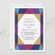 Abstrato geométrico joia gemstone, convite de casamento moderno para chás modernos. Esta design de casamento moderna mostra triângulos em azul marinho, roxo violeta, vermelho rubi, azul turquesa e ouro com o esboço da folha de ouro metálico FAUX que forma uma joia abstrato.