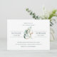 Personalize este elegante e moderno convite para chás de casais de casamento com os seus nomes unidos por um amante verde de cor d'água dourada e eucalipto com um padrão verde de ouro ombre nas costas. Itens correspondentes também estão disponíveis.