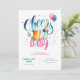 Beers e Garrafas, Cheers to Baby, Baby is Brewing with willowers, greenerase in sage and peach color, convite para chás de fraldas, tema de menina rosa. Campos de texto em ambos os lados.