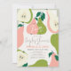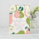 Este cartão de convite para casais/chás de panela/festas de noivado, bonito e moderno, "está a caminho" apresenta peras cor-de-rosa e verdes e fatias de pera num fundo creme enquadrado por uma borda verde-clara. O verso apresenta um fundo verde claro com padrões de pera. Personalize-o para as suas necessidades. Você pode encontrar produtos correspondentes na minha loja.