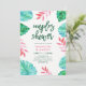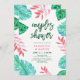 Este incrível convite para chás tropicais apresenta folhas de palma de aquarela em tons azuis, verdes e cor-de-rosa, juntamente com a tipografia correspondente para uma aparência moderna e moderna.