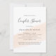 Este convite para chás mínimo e moderno apresenta uma faixa de cor-de-água rosa esfarelada sobre um fundo branco e limpo.