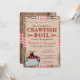 Este design de estilo rústico apresenta um fundo de madeira com fita vermelha e branca. Além disso, há uma textura de burlap com um desenho animado ilustrado como lagosta. A letra vermelha e preta da serif e escrita à mão é personalizável para o seu evento, seja uma ferida de lagosta, lagosta, marisco ou fermento de peixe. Celebre seu noivado, aniversário, graduação ou qualquer evento é estilo!