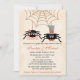 Este casal adorável é mais doce que assustador! A noiva veste um véu de pêssego e coral pálido com um clipe de cabelo floral com uma aparência de diamante falso impresso em pedra solitária (note que não foram adicionados ao trabalho de arte neste convite nenhum embelezamento tridimensional). O noivo veste um chapéu de cinza e laranja e uma gravata de arco. O casal bonito pendura de uma teia de aranha de ouro em um fundo de pergaminho antigo e antigo. A parte de trás do convite tem um padrão cardíaco de bolinhas laranja e branca. Este design é perfeito para um chá de casamento ou chá de panela de casais temáticos do Dia das Bruxas de outubro. Trabalho de arte © Chrissy H. Estúdios, LLC. Todos os direitos reservados.