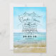 Vintage elegante/retro casais de praia convites para chás com mar turquesa, céu e areia de praia.