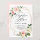 Cor d'água Rosa Cor-de-rosa com quadro Dourado geométrico Florais Casais Convite para Chá. Convite personalizável para chás de casais com buquês românticos de cor d'água, cor-de-rosa e flor branca, com armações geométricas de folha verde e dourada falsa. Este convite para chás florais é perfeito para chás de primavera e jardim.