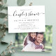 Design de tipografia de chá de script moderno, preto e branco, com foto de casal opcional no verso, simples e elegante. Excelente para casamento moderno. Ver todas as peças correspondentes na coleção