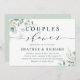 Este convite para o chá apresenta as folhas pintadas de cor aquosa de eucalipto, folhagem verde e folhas azuis-claras com caligrafia na moda. Para personalização mais avançada deste design, clique no link Personalizar mais para alterar a fonte, o tamanho e a cor.