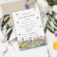 Este convite para o chá de casais moderno e caprichoso apresenta um design botânico sombrio de flores silvestres coloridas com borboletas, espécimes do gênero Bombus spp. e joias-loucas. Você pode personalizar todos os detalhes de texto e posicionamento gráfico de acordo com suas necessidades específicas.