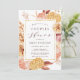 Este convite para o chá apresenta flores rústicas a cores da água pintadas à mão em terracotta, burgundy, laranja queimada, amarela, pincel com grama bege e pampas marrom, e um quadro de retângulo dourado. Para personalização mais avançada deste design, clique no link "personalizar mais". Itens correspondentes também estão disponíveis.