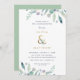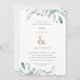 Barato personalizado de convites para chás de casal de casamento impressos personalizados com seus detalhes de evento. Este elegante design apresenta uma folha de alumínio dourada falso com folhagem azul e verde delicada de cor d'água sobre fundo branco. Use as ferramentas de design para personalizar o texto, editar as fontes e as cores ou adicionar suas próprias fotos para criar um convite de chá de casamento e classe.