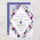 púrpura, fúcsia, casal floral de casamentos de cor d'água, convite de chá, em forma de diamante. Personalize nomes, datas e informações.