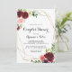 Este convite de casais de primavera de caligrafia geométrica dourada é perfeito para um chá de casamento simples. O design pintado à mão apresenta folhas verdes, cor-de-rosa deslumbrante, pincelada, púrpura, vermelha, branca e lenhosa, pessoas bem organizadas em pequenos buquês bonitos, enfeitando uma estrutura geométrica dourada.