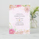 Casais geométricos cor-de-rosa e dourados convite a chás com acentos de formas poligonais de brilho dourado roxo e falso.