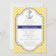 Estrias brancas amarelas e ancorar o convite para chá de casais náuticos. Um design de padrão na moda striped com faixas diagonais brancas amarelas, âncora de uma cinza com um coração e uma corda azuis e seu texto em um quadro com uma faixa azul marinho. Contemporâneo, mas com um olhar vintage, de certo modo. Você pode alterar o plano de fundo e a cor do texto escolhendo entre mais de 200 cores do gráfico de cores do Zazzle. Este design de classe é um modelo completamente personalizável e faz parte de um casamento perfeito para um casamento de verão.