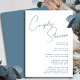 Cartão de Convite para Chás de Casais Quadrados com Script Quimísico Azul Dusty. Celebre o seu dia especial com esta elegante e bela carta de convite para casamento para embelezar a sua ocasião especial. Todos os textos estão pré-organizados para que você personalize fácil e rapidamente com seus próprios detalhes.