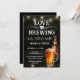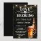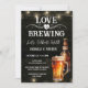 Convites de chá de casal ou festa de noivado fáceis de personalizar Amor está no Ar. Todo o texto é ajustável e fácil de alterar para as necessidades da sua festa. Elementos de fundo rústico com luzes de corda. Redemoinhos e floreios divertidos em quadro-negro. Caneca de cerveja em aquarela. Convites para ele. Design de aniversário de churrasco no bar ou quintal. Qualquer idade, basta alterar o texto.