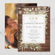 Com belas luzes de corda e delicadas folhas de folhagem em aquarela sobre um fundo de madeira rústica, este convite de chá de casal chic pode ser personalizado com as iniciais do seu monograma em dourado e informações especiais do chá de casamento, com sua foto especial no verso. Criado por Thisisnotme©