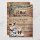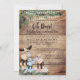 Um convite de Chá de fraldas de inverno rústico, com uma família de cervídeos fofos, com um novo bebê, com pano de fundo de madeira rústico, luzes de cordas e grampos de pinheiro. Entre em contato com o designer ANTES DE PEDIR por meio do Zazzle Chat ou makeitaboutyoustore@gmail.com para obter modificações no design ou ajuda para personalizar ou transferir o design para outro produto.