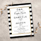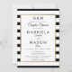 Com um fundo clássico de listras pretas e brancas, este convite de chá de casal de casamento elegante tem uma borda de falso foil dourado emoldurando os detalhes do seu chá de casal em tipografia moderna e sofisticada. Criado por Thisisnotme©