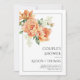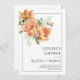 Este belo convite para o chá mostra um adorável arranjo de pêssegos, flores brancas e folhas verdes macios colocadas graciosamente no canto superior esquerdo. O texto é apresentado em caracteres chic e sofisticados, melhorando a estética geral do convite. Uma fina borda preta enquadra o design, adicionando um toque de refinamento e completando o encanto convidativo desta peça deliciosa.