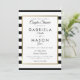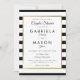 Com um fundo clássico de listras pretas e brancas, este convite elegante de chá de casal tem uma borda com efeito de folha de ouro falso emoldurando os detalhes do seu chá de casal em tipografia moderna e sofisticada. Projetado por Thisisnotme©