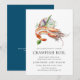 Um conjunto de convites de chá de casal com tema boil de lagostim para o seu próximo churrasco ou festa relacionada a frutos do mar. Estes convites apresentam texto preto simples, juntamente com uma ilustração única de lagostim centralizada no topo. No verso do convite há um fundo Azul Oceano listrado. Todos os elementos deste convite são ajustáveis usando a função de personalização. Divirta-se adicionando seus próprios detalhes e tornando-o seu.