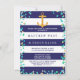 Um design festivo com extensas faixas azuis e brancas horizontais, pontos em tons de azul marinho e verde, bem como amarelo ao longo da fronteira. Um motivo de âncora de ouro dá a ele um talo náutico. Personalize este convite para um chá de casamento de casais. Também pode ser personalizado para um chá de panela. Este convite é excelente para tema náutico, praia ou oceano.