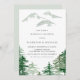 Convite para chá de casamento do tema Woodland. Apresenta árvores de aquarelas e montanhas com padrão de listras e típica tipografia. Os textos são perfeitamente editáveis para todos os efeitos. Personalize adicionando seus próprios detalhes. Este convite à floresta aquarela é perfeito para o outono e o chá casamento no inverno.