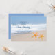 Convide seus convidados para o chá do seu casal casual de casamento com este belo e novo convite. Mostra uma praia com o mar azul e um par de estrelas-do-mar na areia bege.