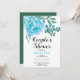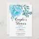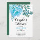 Flores de cacto de cor aquosa azul e primavera suculento e convite para chá de casais florais de verão. Apresenta flores de cacto azul-aqua e folhas suculentas verdes. A parte de trás é de cor verde sólida.