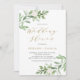 Calor de Aquarelas e Flores Convite ao Chá de casamento | Convide familiares e amigos para o seu chá de casamento com este convite personalizável. Apresenta ilustrações de aquarela e padrão de folhagem e flores brancas. Este convite floral é perfeito para chás de casamento de primavera e jardim.